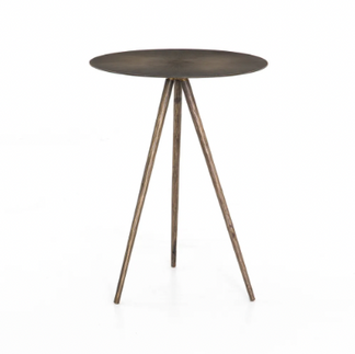 Beside the sofa, I chose two different accent tables since there wasn't enough room for two larger ones. To the left of the sofa is a small brass drink table, and to the right is a beautiful cane side table to bring in another textural element.